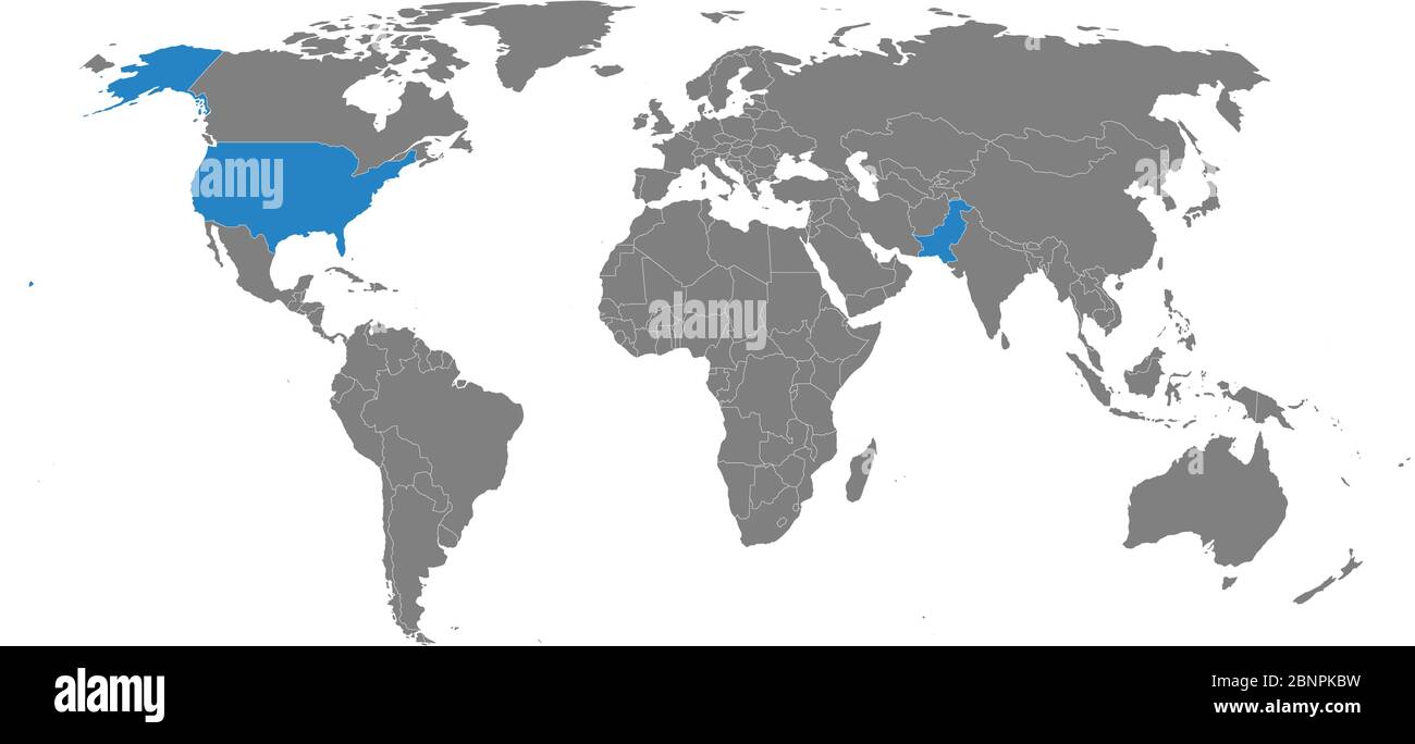 Pakistan, USA political map highlighted on world map. Gray